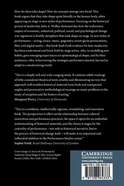 This book demonstrates how the experience of change in the modern period was first registered in bodily metaphors that took shape on stage. In new styles of performance-acting, dance, music, pageantry, avant-garde provocations, film and video-it finds fresh evidence for how modernity has been understood and lived.