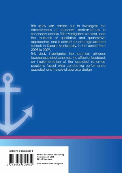 The study was carried out to investigate the effectiveness of teachers' performances in secondary schools. This investigation is based upon the methods of qualitative and quantitative approaches, and is carried out amongst selected schools in Kabale Municipality, in the period from 2008 to 2009. The study investigates the teachers' attitudes towards appraisal schemes, the effect of feedback on implementation of the appraisal schemes, problems faced while conducting performance appraisal, and the role of appraisal design.