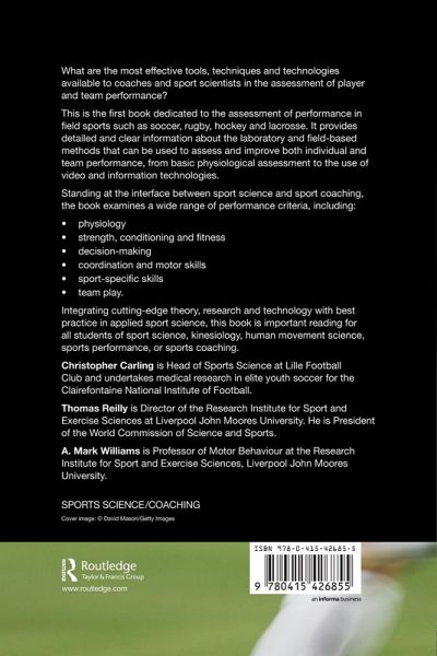 This is the first book dedicated to the assessment of performance in field sports such as soccer, rugby, hockey, and lacrosse. It provides detailed and clear information about the laboratory and field-based methods that can be used to assess and improve both individual and team performance, from basic physiological assessment to the use of video and information technologies.