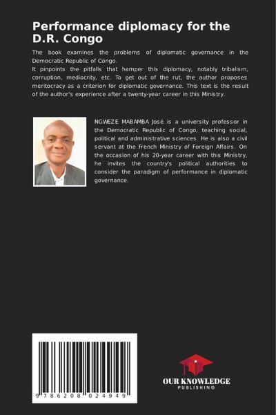 The book examines the problems of diplomatic governance in the Democratic Republic of Congo.It pinpoints the pitfalls that hamper this diplomacy, notably tribalism, corruption, mediocrity, etc. To get out of the rut, the author proposes meritocracy as a criterion for diplomatic governance. This text is the result of the author's experience after a twenty-year career in this Ministry.