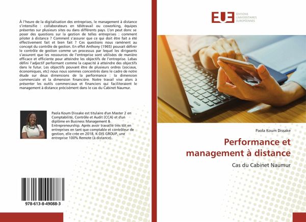 À l'heure de la digitalisation des entreprises, le management à distance s'intensifie : collaborateurs en télétravail ou coworking, équipes présentes sur plusieurs sites ou dans différents pays. L'on peut donc se poser des questions sur la gestion de telles entreprises : comment piloter à distance ? Comment s'assurer que ce qui doit être fait a été effectivement fait et bien fait ? Ces questions nous ramènent au concept du contrôle de gestion. En effet Anthony (1965) pouvait définir le contrôle de gestion comme un processus par lequel les dirigeants s'assurent que les ressources de l'entreprise sont utilisées de manière efficace et efficiente pour atteindre les objectifs de l'entreprise. Lebas défini l'adjectif performant comme la capacité à atteindre des objectifs dans le futur. Les objectifs pouvant être de plusieurs ordres (sociaux, économiques, etc) nous nous sommes concentrés dans le cadre de notre étude sur deux dimensions de la performance : la dimension commerciale et la dimension financière. Notre travail vise alors à présenter les outils commerciaux et financiers qui faciliteraient le management à distance précisément dans le cas du Cabinet Naumur.