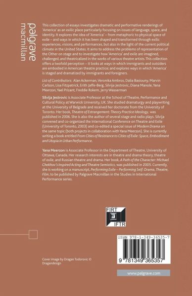 List of illustrations Series editors' preface Acknowledgements Notes on contributors Introduction: Framing 'America': Between Exilic Imaginary and Exilic Collective; S.Jestrovic & Y.Meerzon PART 1: 'AMERICA' BETWEEN THE EXILIC IMAGINARY AND THE EXILIC COLLECTIVE Land of Air-conditioning and Opportunity: America on the Irish Stage; E.Fitzpatrick Ninety Miles Away: Exile and Identity in Recent Cuban-American Dramas; Y.Prizant An American Mile in Others' Shoes' - The Tragicomedy of Immigrating to the 21st Century U.S.; D.Manole The American Landscape Reconsidered. On Theatricality of Urban America in the Russian Émigré Writings, with the special focus on Vasily Aksyonov's works; Y.Meerzon PART 2: AMERICAN PERFORMATIVITY Theatres in America: Brecht and Kafka; F.Rokem America Relocated - Karel Capek's Robots between Prague, Berlin and New York; V.Ambros At Home in Exile: Finding America in Casablanca and Camino Real ; A.Ackerman PART 3: AMERICA AND THE OTHER: FROM REPRESENTATION TO INTERVENTION De-Territorializing Voices: Staging the Middle East in American Theatre; E.Jaffe-Berg Current Trends in Arab-American Performance; D.Basiouny & M.Carlson Bombing (on) the Border: Ali& Ali and the aXes of Evil as Transnational Agitprop; J.Wasserman Exiles and the City: Krzysztof Wodiczko's New York Interventions of Making the Familiar Strange; S.Jestrovic Index