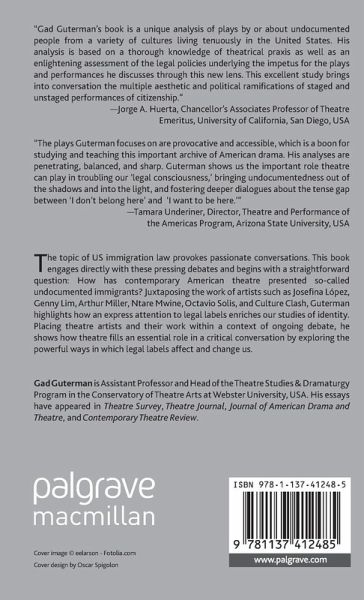 "The plays Guterman focuses on are provocative and accessible, which is a boon for studying and teaching this important archive of American drama. His analyses are penetrating, balanced, and sharp. Guterman shows us the important role theatre can play in troubling our 'legal consciousness,' bringing undocumentedness out of the shadows and into the light, and fostering deeper dialogues about the tense gap between 'I don't belong here' and 'I want to be here.'" - Tamara Underiner, Director, Theatre and Performance of the Americas Program, Arizona State University, USA