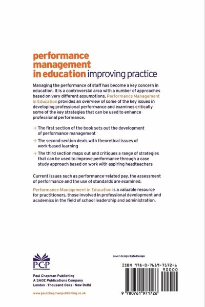 `This book makes an important contribution to the debate on how school and individual performance may be enhanced. It would be of value to any teachers, education manager or academic who is interested in the issues of improvement in school performance'- Scottish Educational Review `....there is much to commend this book. The diagrams are very clear and `lift' the text so that creative thought, rather than mere comprehension, becomes possible' - Nurturing Potential Managing the performance of staff has become a key concern in education. It is a controversial area with a number of approaches based on very different assumptions. This book provides an overview of some of the key issues in developing professional performance and examines critically some of the strategies that can be used to enhance it. - The first section of the book sets out the development of performance management. - The second section deals with theoretical issues. - The third section adopts a case study approach mapping out and critiquing a range of strategies that can be used to improve performance. - Current issues such as work-based learning, performance related pay, the assessment of performance and the use of standards are examined. Performance Management in Education is a valuable resource for practitioners, those involved in professional development, and academics in the field of school leadership and administration.