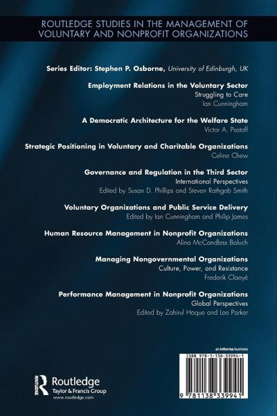 Foreword. Preface. Part I: Introduction and Context 1. Accountability, Governance and Performance Management in Nonprofit Organizations: an Overview Zahirul Hoque and Lee D. Parker 2. Politics, Development and NGO Accountability Zahir Ahmed and Trevor Hopper 3. Terrorists and Tax-Cheats: Transforming Accountability in United States Nonprofits Leslie Oakes 4. Social Reporting for Italian Social Enterprises: Did the Italian Legislator Miss an Opportunity? Ericka Costa Part II: Issues in Financial Reporting and Regulation 5. An Unrelated Income Tax for Australia? Evelyn Brody, Oonagh Breen, Myles McGregor-Lowndes and Matthew Turnour 6. Financial Reserves: A Necessary Condition for Not-for-Profit Sustainability? Michael Booth, Myles McGregor-Lowndes, Christine Ryan and Helen Irvine 7. Regulations and Financial Reporting Practices of Micro-finance Institutions in Bangladesh Rakib Khan and Kamran Ahmed 8. UK Charity Accounting: Developments, Issues and Recent Research Ciaran Connolly, Noel Hyndman and Danielle McConville Part III: Issues in Accountability Process and Governance 9. Nonprofit Service Delivery for Government: Accountability Relationships and Mechanisms Craig Furneaux and Neal Ryan 10. What Costs Accountability? Financial Accountability, Mission and Fundraising in Nonprofits Benjamin Pawson and Vassili Joannidès 11. Patterns of Board Room Discussions around the Accountability Process in a Nonprofit Organization Vassili Joannidès, Stéphane Jaumier and Zahirul Hoque 12. Boardroom Governance: Interrogating Strategizing, Control and Accountability Processes Lee Parker and Zahirul Hoque 13. Australian Charity Reporting Reforms: Serving Private or Public Interests? Phil Saj Part IV: Issues in Performance Management and Risk 14. Conceptualizing Performance in the Not-for-Profit Sector: A Tale of Two Theories Basil Tucker 15. Board Monitoring and the Balanced Scorecard: Challenges in Realizing Potential Alan Hough, Myles McGregor-Lowndes and Christine Ryan 16. Government Grants - an Abrogation or Management of Financial Risks? Debra Morris, Myles McGregor-Lowndes and Julie-Ann Tarr 17. Performing Civil Society Chandana Alawattage, Danture Wickramasinghe and Anula Tennakoon