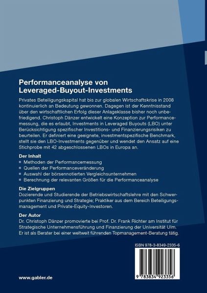 Die vorliegende Arbeit wurde im Dezember 2009 an der Universität Ulm als Disser- tionsschrift angenommen. Ich möchte mich an dieser Stelle bei allen bedanken, die mich bei ihrer Anfertigung während der letzten zwei Jahre unterstützt haben und mir auf vielfältige Arten zur Seite standen. Zuerst bedanke ich mich bei meinem Doktorvater Prof. Dr. Frank Richter für die M- lichkeit, an seinem Institut meinem Interesse für Private Equity und Leveraged B- outs folgen zu können. Insbesondere möchte ich seine ständige Bereitschaft zur inhaltlichen Diskussion sowie den gewährten Freiraum bei der Bearbeitung meines Themas hervorheben. Gepaart mit seiner Verlässlichkeit bei Absprachen hat dies - nen optimalen Rahmen für meine Promotion ergeben. Außerdem gilt mein Dank Prof. Dr. Leo Brecht für die Erstellung des Zweitgutachtens sowie die Übernahme des Vorsitzes im Rahmen der mündlichen Prüfung und Prof. Dr. Werner Smolny für die Übernahme des Amts des Wahlmitglieds im Rahmen des Promotionskolloquiums. Ferner möchte ich dem gesamten Lehrstuhlteam des Ins- tuts für Strategische Unternehmensführung und Finanzierung für die erhaltene - terstützung danken. Besonders Frau Anette Lesle für ihre Hilfsbereitschaft bei organisatorischen Angelegenheiten gebührt mein Dank. Darüber hinaus danke ich Herrn Fabian Kracht für seine ständige Bereitschaft, sich neben seiner eigenen Promotion zusätzlich noch mit meinen Fragen zu beschäftigen, seine umfassenden Korrekturhilfen am Ende der Arbeit sowie die gegenseitige Mo- vation während der gesamten Zeit.