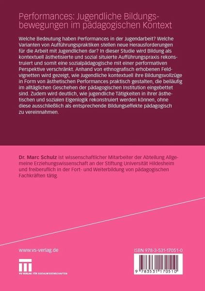 Welche Bedeutung haben Performances in der Jugendarbeit? Welche Varianten von Aufführungspraktiken stellen neue Herausforderungen für die Arbeit mit Jugendlichen dar? In dieser Studie wird Bildung als kontextuell ästhetisierte und sozial situierte Aufführungspraxis rekonstruiert und somit eine sozialpädagogische mit einer performativen Perspektive verschränkt. Anhand von ethnografisch erhobenen Feldvignetten wird gezeigt, wie Jugendliche kontextuell ihre Bildungsvollzüge in Form von ästhetischen Performances praktisch gestalten, die beiläufig im alltäglichen Geschehen der pädagogischen Institution eingebettet sind. Zudem wird deutlich, wie jugendliche Tätigkeiten in ihrer ästhetischen und sozialen Eigenlogik rekonstruiert werden können, ohne diese ausschließlich als entsprechende Bildungseffekte pädagogisch zu vereinnahmen.