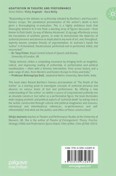 This book takes Roland Barthes's famous proclamation of 'The Death of the Author' as a starting point to investigate concepts of authorial presence and absence on various levels of text and performance. By offering a new understanding of 'the author' as neither a source of unquestioned authority nor an obsolete construct, but rather as a performative figure, the book illuminates wide-ranging aesthetic and political aspects of 'authorial death' by asking: how is the author constructed through cultural and political imaginaries and erasures, intertextual and intertheatrical references, re-performances and self-referentiality? And what are the politics and ethics of these constructions?