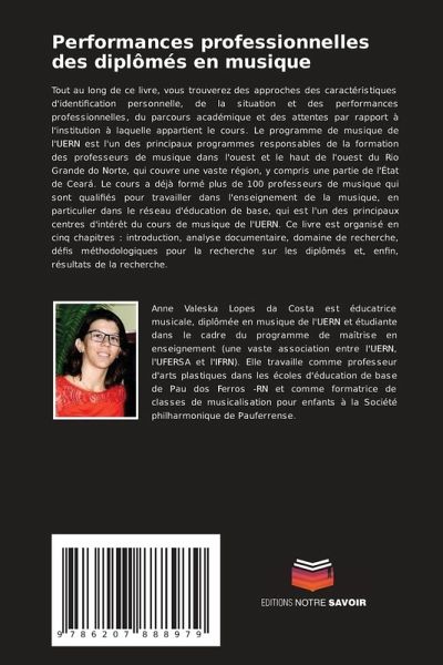 Tout au long de ce livre, vous trouverez des approches des caractéristiques d'identification personnelle, de la situation et des performances professionnelles, du parcours académique et des attentes par rapport à l'institution à laquelle appartient le cours. Le programme de musique de l'UERN est l'un des principaux programmes responsables de la formation des professeurs de musique dans l'ouest et le haut de l'ouest du Rio Grande do Norte, qui couvre une vaste région, y compris une partie de l'État de Ceará. Le cours a déjà formé plus de 100 professeurs de musique qui sont qualifiés pour travailler dans l'enseignement de la musique, en particulier dans le réseau d'éducation de base, qui est l'un des principaux centres d'intérêt du cours de musique de l'UERN. Ce livre est organisé en cinq chapitres : introduction, analyse documentaire, domaine de recherche, défis méthodologiques pour la recherche sur les diplômés et, enfin, résultats de la recherche.