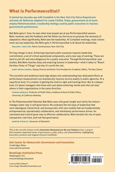 "A Brookings Institution Press and Ash Center for Democratic Governance and Innovation publication It started two decades ago with CompStat in the New York City Police Department, and quickly jumped to police agencies across the U.S. and other nations. It was adapted by Baltimore, which created CitiStat-the first application of this leadership strategy to an entire jurisdiction. Today, governments at all levels employ PerformanceStat: a focused effort by public executives to exploit the power of purpose and motivation, responsibility and discretion, data and meetings, analysis and learning, feedback and follow-up-all to improve government's performance. Here, Harvard leadership and management guru Robert Behn analyzes the leadership behaviors at the core of PerformanceStat to identify how they work to produce results. He examines how the leaders of a variety of public organizations employ the strategy-the way the Los Angeles County Department of Public Social Services uses its DPSSTATS to promote economic independence, how the City of New Orleans uses its BlightStat to eradicate blight in city neighborhoods, and what the Federal Emergency Management Agency does with its FEMAStat to ensure that the lessons from each crisis response, recovery, and mitigation are applied in the future. How best to harness the strategy's full capacity? The PerformanceStat Potential explains all."