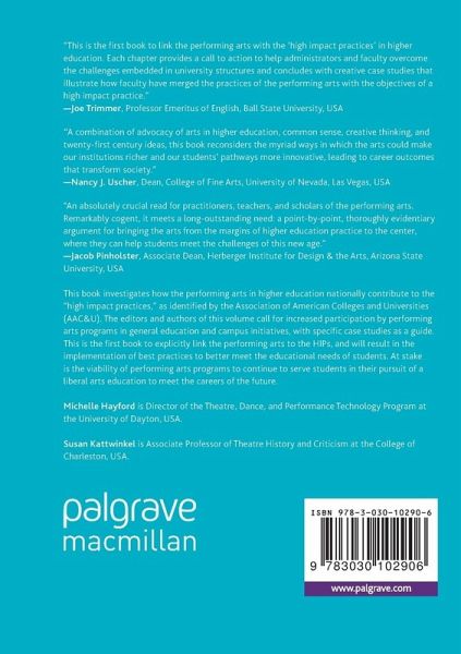 This book investigates how the performing arts in higher education nationally contribute to the "high impact practices," as identified by the Association of American Colleges and Universities (AACU). Using the well-known map of the HIPs for illustrating the centrality of performing arts practices in higher education, the editors and authors of this volume call for increased participation by performing arts programs in general education and campus initiatives, with specific case studies as a guide. Performing arts contribute to the efforts of their institution in delivering a strong liberal arts education that uniquely serves students to meet the careers of the future. This is the first book to explicitly link the performing arts to the HIPs, and will result in the implementation of best practices to better meet the educational needs of students. At stake is the viability of performing arts programs to continue to serve students in their pursuit of a liberal arts education.