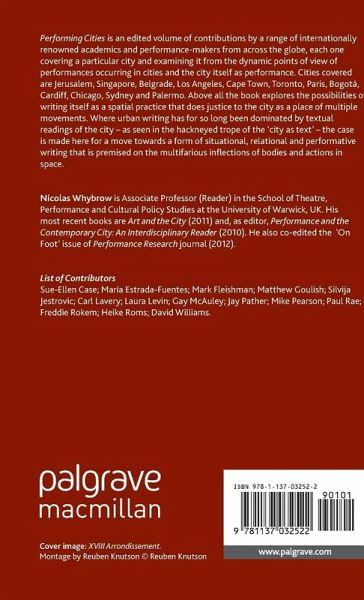 Performing Cities is an edited volume of contributions by a range of internationally renowned academics and performance makers from across the globe, each one covering a particular city and examining it from the dynamic perspectives of performances occurring in cities and the city itself as performance.