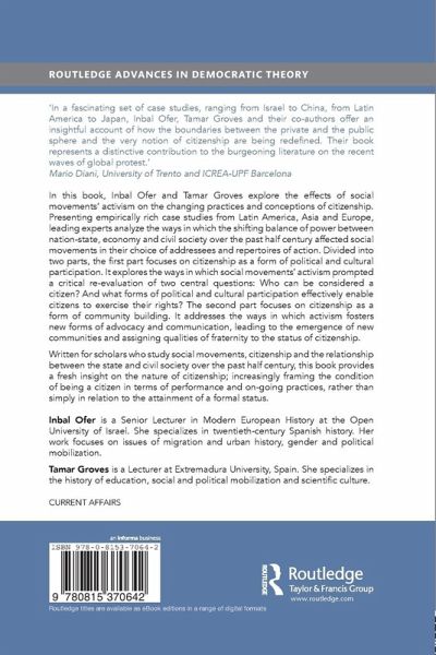 Introduction: Performing Citizenship Tamar Groves and Inbal Ofer 1. Social Movements, Democratic Transition and Citizenship: Spain in the1970s Pamela Radcliff 2. Pink Tide Governments, Radical Social Movements and the Practice of Citizenship in 21st Century Latin America Paul Haber 3. Between Inclusionary Demands and Sociopolitical Divides:The Israeli 2011 Summer of Discontent Zeev Rosenhek and Michael Shalev 4. Evolving Civil Society in China: Transnational Impacts Jie Chen 5. Challenging the Boundaries of Citizenship:Transnational Activism in Contemporary Japan Simon Avenell 6. From Local to Global: The Multiscalar Dimension of the Zapatista Rebellion and the Transnational Networks of Social Mobilizations Guiomar Rovira