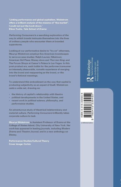 Performing Consumers is an exploration of the way in which brands insinuate themselves into the lives of ordinary people who encounter them at branded superstores. Looking at our performative desire to 'try on' otherness, Maurya Wickstrom employs five American brandscapes to serve as case studies: Ralph Lauren; Niketown; American Girl Place; Disney store and The Lion King; and The Forum Shops at Caesar's Palace in Las Vegas. In this post-product era, each builds for the performer/consumer an intensely pleasurable, somatic experience of merging into the brand and reappearing as the brand, or the brand's fictional meanings. To understand this embodiment as the way that capital is producing subjectivity as an aspect of itself, Wickstrom casts a wide net, drawing on: the history of capital's relationship with theatre political developments in the United States recent work in political science, philosophy, and performance studies. An adventurous study of theatrical indeterminancy and material culture, Performing Consumers brilliantly takes corporate culture to task.