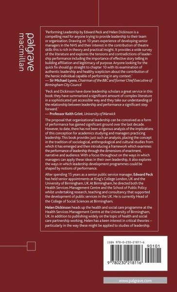 A rigorous analysis of the implications of leadership being seen literally or metaphorically as a performance. The book introduces a framework which examines the performance of leadership through the dimensions of enactment, narrative and audience, focusing throughout on the ways in which managers can apply these ideas in their own leadership.