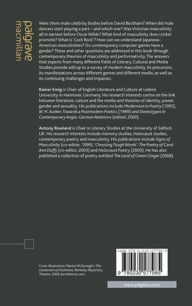 Notes on Contributors Foreword; J.Bristow Introduction; R.Emig and A.Rowland Touching Byron: Masculinity and the Celebrity Body in the Romantic Period; D.Saglia Turning into Subjects: The Male Dancer in Romantic Ballet; G.Siegmund Industrial Heroes: Elizabeth Gaskell and Charlotte Brontë's Constructions of the Masculine; J.L.Malay Low on Assurance: The Troubled Masculinity of Victorian Comedy; R.Emig Performing Imperial Masculinities: The Discourse and Practice of Cricket; A.Bateman 'A Stoat Came to Tea': Camp Poetics and Masculinity; A.Rowland Lethal Enclosure: Masculinity under Fire in James Jones's The Thin Red Line; D.Boulting In their Fathers' Footsteps: Performing Masculinity and Fatherhood in the Work of Les Murray and Michael Ondaatje; K.Burkitt Seeding Asian Masculinities in the U.S. Landscape: Representations of Men's Lives in Asian American Literature; W.Ho From Glam Rock to Cock Rock: Revis(it)ing Rock Masculinities in Recent Feature Films; L.Krämer Histories of Violence - Fairytales of Identity and Masculinity in Martin McDonagh's The Lieutenant of Inishmore and The Pillowman; W.Funk 'Ghosts of Sparta': Performing the God of War's Virtual Masculinity; S.Schmalfuß Notes Index