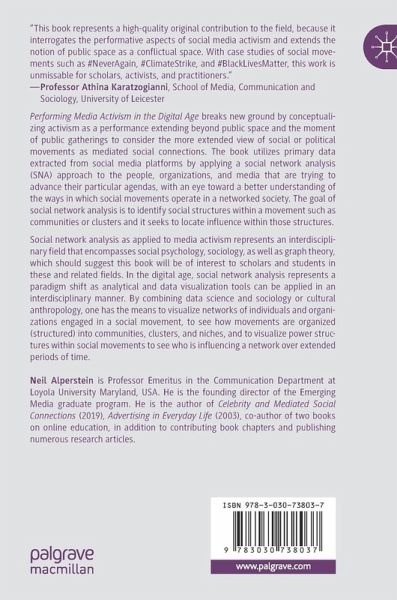 Performing Media Activism in the Digital Age breaks new ground by conceptualizing activism as a performance extending beyond public space and the moment of public gatherings to consider the more extended view of social or political movements as mediated social connections. The book utilizes primary data extracted from social media platforms by applying a social network analysis (SNA) approach to the people, organizations, and media that are trying to advance their particular agendas, with an eye toward a better understanding of the ways in which social movements operate in a networked society. The goal of social network analysis is to identify social structures within a movement such as communities or clusters and it seeks to locate influence within those structures.