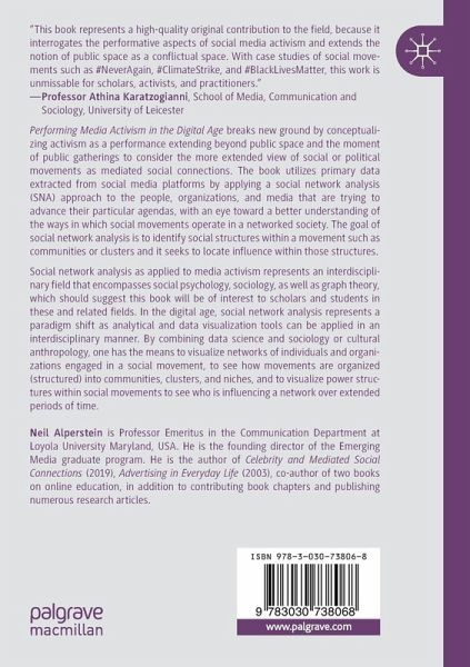 Performing Media Activism in the Digital Age breaks new ground by conceptualizing activism as a performance extending beyond public space and the moment of public gatherings to consider the more extended view of social or political movements as mediated social connections. The book utilizes primary data extracted from social media platforms by applying a social network analysis (SNA) approach to the people, organizations, and media that are trying to advance their particular agendas, with an eye toward a better understanding of the ways in which social movements operate in a networked society. The goal of social network analysis is to identify social structures within a movement such as communities or clusters and it seeks to locate influence within those structures.
