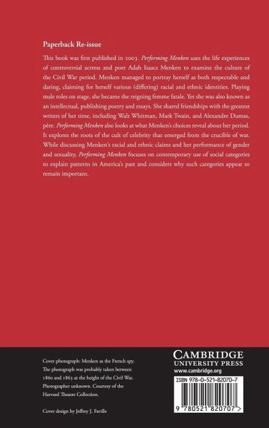 This book was first published in 2003. Performing Menken uses the life experiences of controversial actress and poet Adah Isaacs Menken to examine the culture of the Civil War period. Menken managed to portray herself as both respectable and daring, claiming for herself various (differing) racial and ethnic identities. Playing male roles on stage, she became the reigning femme fatale. Yet she was also known as an intellectual, publishing poetry and essays. She shared friendships with the greatest writers of her time, including Walt Whitman, Mark Twain, and Alexandre Dumas, père. Performing Menken also looks at what Menken's choices reveal about her period. It explores the roots of the cult of celebrity that emerged from the crucible of war. While discussing Menken's racial and ethnic claims and her performance of gender and sexuality, Performing Menken focuses on contemporary use of social categories to explain patterns in America's past and considers why such categories appear to remain important.