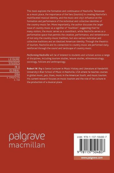 This book explores the formation and continuance of Nashville, Tennessee as a music place, the importance of the fans (tourists) in creating Nashville's multifaceted musical identity, and the music and city's influence on the formation and performance of the individual and collective identities of the country-music fan. More importantly, the author discusses the larger issue of country music as a signifier of tradition suggesting that for many visitors, the music serves as a soundtrack, while Nashville serves as a performative space that permits the creation, performance, and remembrance of not only the country-music tradition, but also various individual and collective traditions and an idealized American identity. Through the theatrics of tourism, Nashville and its connection to country music are performed daily, reinforced through the sound and landscape of country music.