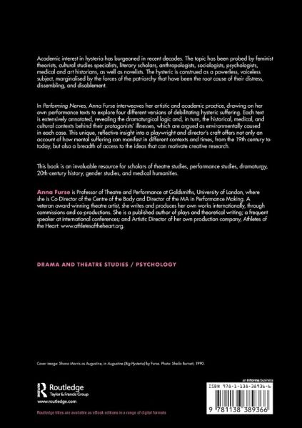 Academic interest in hysteria has burgeoned in recent decades. The topic has been probed by feminist theorists, cultural studies specialists, literary scholars, anthropologists, sociologists, psychologists, medical and art historians, as well as novelists. The hysteric is construed as a powerless, voiceless subject, marginalised by the forces of the patriarchy that have been the root cause of their distress, dissembling, and disablement.¿ In Performing Nerves, Anna Furse interweaves her artistic and academic practice, drawing on her own performance texts to explore four different versions of debilitating hysteric suffering. Each text is extensively annotated, revealing the dramaturgical logic and, in turn, the historical, medical, and cultural contexts behind their protagonists' illnesses, which are argued as environmentally caused in each case. This unique, reflective insight into a playwright and director's craft offers not only an account of how mental suffering can manifest in different contexts and times, from the 19th century to today, but also a breadth of access to the ideas that can motivate creative research. This book is an invaluable resource for scholars of theatre studies, performance studies, dramaturgy, 20th-century history, gender studies, and medical humanities.