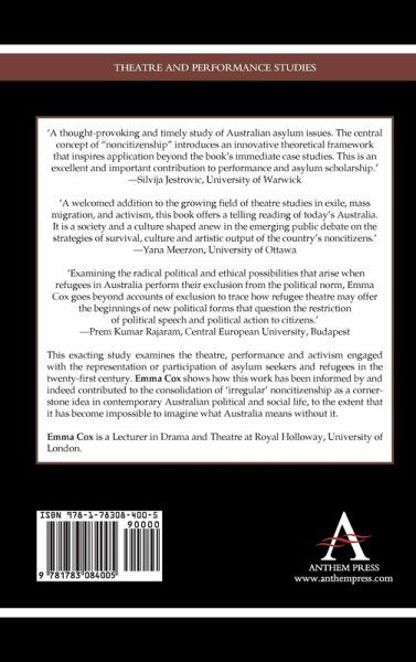 This exacting study examines the role that theatre, film and activism responsive to asylum seekers has played in the emergence of 'irregular' noncitizenship as a cornerstone idea in contemporary Australian political and social life.