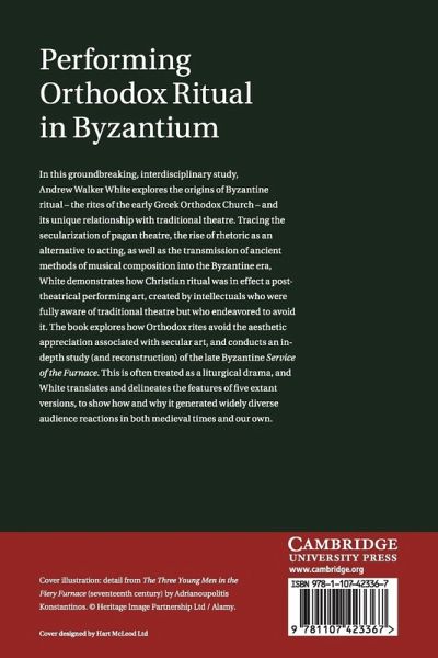 Introduction Part I. Byzantine Spatial, Performance and Musical Practices: 1. Spatial practices in Byzantium 2. Ritual versus theatrical performance in Byzantium 3. Musical practices in Byzantium Part II. A Study of the Service of the Furnace: 4. Origins of the Service 5. The Service's historical context Conclusion Appendix 1. The Service of the Furnace, Athens 4027 Appendix 2. The Service of the Furnace, Athens 2406 Appendix 3. The Service of the Furnace, Iviron 1120 Appendix 4. The Service of the Furnace, Sinai 1527 Appendix 5. The Service of the Furnace, Lavra 165 Appendix 6. Archbishop Symeon's Dialogue in Christ Appendix 7. The Russian Furnace Play Glossary.