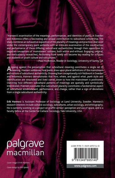 "Hannerz's examination of the meanings, performances, and identities of punks in Sweden and Indonesia offers a fascinating and unique contribution to subcultural scholarship. The study combines an exhaustive exposition of the plurality of meanings and practices that exist under the contemporary punk umbrella with an intricate examination of the construction and performance of these differing subcultural authenticities through their opposition to negative conceptions of 'mainstream' cultures, both within and without. Engaging, original, and meticulously researched, Performing Punk surely will become key reading for scholars and students of youth culture and subcultures." - Paul Hodkinson, Reader in Sociology, University of Surrey, UK