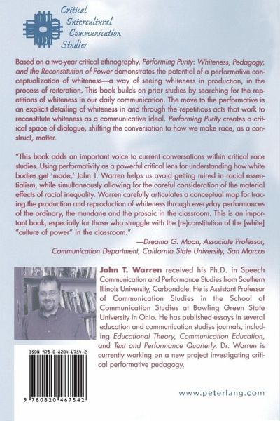 Based on a two-year critical ethnography, Performing Purity: Whiteness, Pedagogy, and the Reconstitution of Power demonstrates the potential of a performative conceptualization of whiteness - a way of seeing whiteness in production, in the process of reiteration. This book builds on prior studies by searching for the repetitions of whiteness in our daily communication. The move to the performative is an explicit detailing of whiteness in and through the repetitious acts that work to reconstitute whiteness as a communicative ideal. Performing Purity creates a critical space of dialogue, shifting the conversation to how we make race, as a construct, matter.