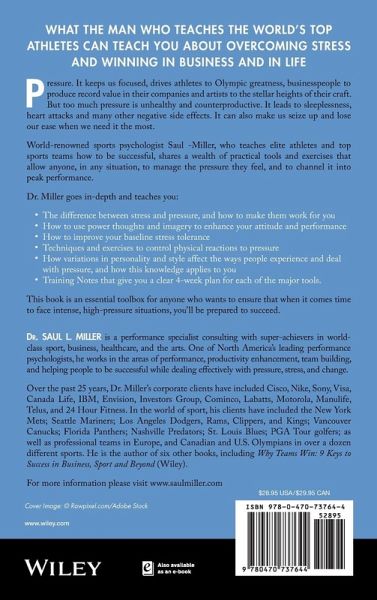 WHAT THE MAN WHO TEACHES THE WORLD'S TOP ATHLETES CAN TEACH YOU ABOUT OVERCOMING STRESS AND WINNING IN BUSINESS AND IN LIFE Pressure. It keeps us focused, drives athletes to Olympic greatness, businesspeople to produce record value in their companies and artists to the stellar heights of their craft. But too much pressure is unhealthy and counterproductive. It leads to sleeplessness, heart attacks and many other negative side effects. It can also make us seize up and lose our ease when we need it the most. World-renowned sports psychologist Saul -Miller, who teaches elite athletes and top sports teams how to be successful, shares a wealth of practical tools and exercises that allow anyone, in any situation, to manage the pressure they feel, and to channel it into peak performance. Dr. Miller goes in-depth and teaches you: * The difference between stress and pressure, and how to make them work for you * How to use power thoughts and imagery to enhance your attitude and performance * How to improve your baseline stress tolerance * Techniques and exercises to control physical reactions to pressure * How variations in personality and style affect the ways people experience and deal with pressure, and how this knowledge applies to you * Training Notes that give you a clear 4-week plan for each of the major tools. This book is an essential toolbox for anyone who wants to ensure that when it comes time to face intense, high-pressure situations, you'll be prepared to succeed.