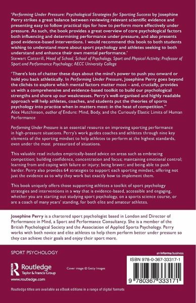 'Performing Under Pressure: Psychological Strategies for Sporting Success by Josephine Perry strikes a great balance between reviewing relevant scientific evidence and presenting easy to follow practical tips for how to perform more effectively under pressure. As such, the book provides a great overview of core psychological factors both influencing and determining performance under pressure, and also presents good evidence-based interventions. I would recommend this book to both students wishing to understand more about sport psychology and athletes seeking to both understand and enhance their own mental performance.' - Stewart Cotterill, Head of School, School of Psychology, Sport and Physical Activity; Professor of Sport and Performance Psychology; AECC University College