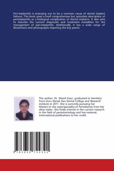 Peri-implantitis is emerging out to be a common cause of dental implant failures. This book gives a breif comprehensive but uptodate description of periimplantitis as a biological complication of dental implants. It also aims to describe the current diagnostic and treatment modalities for the management of peri-implantitis. Additionally, it has a wide range of illustartions and photographs depicting the key points.