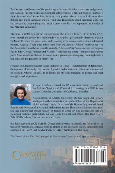 Yvonne Korshak received her BA cum laude from Harvard, and her MA in Classics and Classical Archaeology and PhD in Art History from the University of California, Berkeley.As a professor at Adelphi University, she has taught Art History and topics in the Humanities, served as Chair of the Department of Art and Art History, Director of the Honors Program in Liberal Studies and Director of a National Endowment for the Humanities Summer Institute. She has written and spoken widely on topics of Greek art and archaeology and on European painting, particularly on van Gogh, Courbet and David. Her blog, "Let's Talk Off-Broadway," focuses on art and theater.She has excavated at Old Corinth, Greece and, to write this novel, has followed in the tracks of Pericles and Aspasia, visiting almost all the cities and towns, landscapes and seascapes in Greece and in what today is Turkey that figure in this book. The Sword of the War God, a sequel to Pericles and Aspasia, will appear soon.