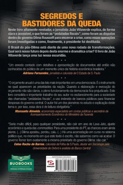 Neste livro altamente revelador, o jornalista João Villaverde explica, de forma clara e acessível, o que foram as ¿pedaladas fiscais¿, como foram as disputas dentro do governo Dilma Rousseff para encerrar a crise, como essas operações foram investigadas e como, finalmente, a presidente foi destituída. O Brasil do pós-Dilma está diante de uma nova rodada de transformações. O livro alerta para o que poderia ser uma política econômica para o futuro. Em todos os momentos de grave crise, diversas reformas ¿ sociais, políticas e até culturais ¿ surgiram. Foi assim logo após a Revolução de 1930, após o golpe militar de 1964, mais tarde durante a ¿década perdidä dos anos 1980 e também após a quase falência dos bancos públicos e do próprio governo no fim dos anos 1990. O Brasil do pós-Dilma está diante de uma nova rodada de transformações. O que sairá da implosão do acordo político e econômico do pós-Constituição de 1988? Ao dissecar as pedaladas fiscais e o papel de diferentes segmentos do governo federal (os economistas, os investigadores e os advogados). Qual será nosso futuro depois desta enorme e dramática crise? O livro de João Villaverde lança uma luz nessa escuridão.