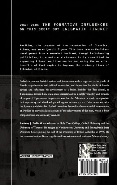 This book traces Pericles' development from a somewhat hesitant, though left-leaning politician, to a mature statesman fully committed to expanding Athens' maritime empire and using the material benefits of that empire to improve the ordinary lives of Athenian citizens. Anthony J. Podlecki depicts Pericles actions and interactions with a large and varied circle of friends, acquaintances, and political adversaries and demonstrates how his circle advised and influenced his development as a leader.
