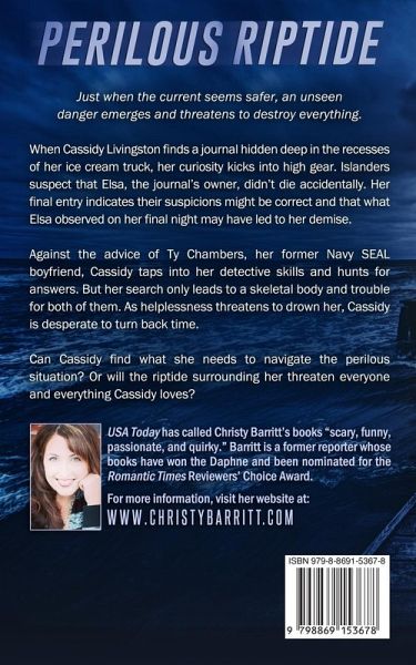 Just when the current seems safer, an unseen danger emerges and threatens to destroy everything. When Cassidy Livingston finds a journal hidden deep in the recesses of her ice cream truck, her curiosity kicks into high gear. Islanders suspect that Elsa, the journal's owner, didn't die accidentally. Her final entry indicates their suspicions might be correct and that what Elsa observed on her final night may have led to her demise. Against the advice of Ty Chambers, her former Navy SEAL boyfriend, Cassidy taps into her detective skills and hunts for answers. But her search only leads to a skeletal body and trouble for both of them. As helplessness threatens to drown her, Cassidy is desperate to turn back time. Can Cassidy find what she needs to navigate the perilous situation? Or will the riptide surrounding her threaten everyone and everything Cassidy loves? Other Books in the Lantern Beach Mystery Series: Hidden Currents Flood Watch Storm Surge Dangerous Waters Perilous Riptide Deadly Undertow