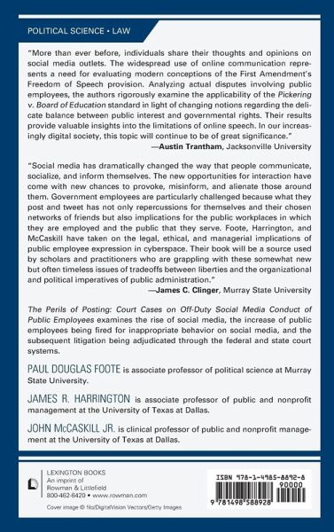 In recent years, there has been an increase of public employees being fired for inappropriate behavior on social media. This research explores social media conduct of public employees that have been adjudicated through the federal and state court systems. The arguments of these cases are based upon the question of an employee's first amendment rights versus the rights of the employer to maintain a desired work environment. The research found that widespread negative publicity, disruption of close working relationships, inappropriate and offensive employees comments led to favorable outcomes for the public employers. In contrast, when an employee posts on social media while off-duty as a private citizen, the employer has not cited any disruption and the comments are not personal attacks against employers but have substantial public concerns led to positive outcomes for the public employee.