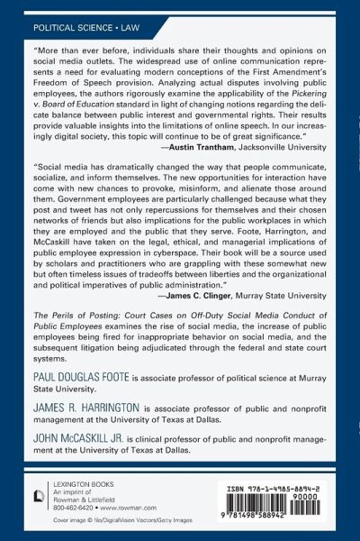 This book examines the rise of social media, the increase of public employees being fired for inappropriate behavior on social media, and subsequent litigation being adjudicated through the federal and state court systems.