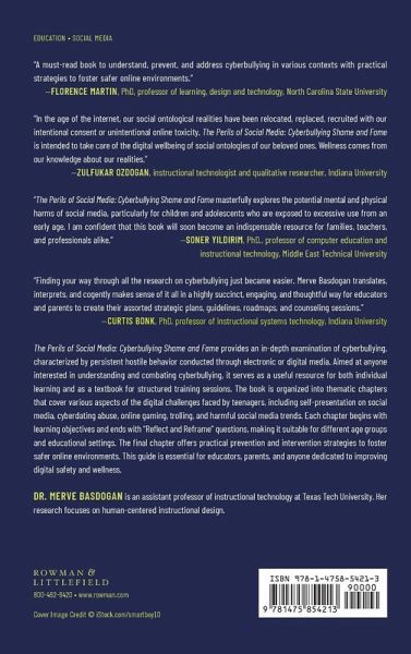 The Perils of Social Media: Cyberbullying Shame and Fame provides an in-depth examination of cyberbullying, characterized by persistent hostile behavior conducted through electronic or digital media. Aimed at anyone interested in understanding and combating cyberbullying, it serves as a useful resource for both individual learning and as a textbook for structured training sessions. The book is organized into thematic chapters that cover various aspects of the digital challenges faced by teenagers, including self-presentation on social media, cyberdating abuse, online gaming, trolling, and harmful social media trends. Each chapter begins with learning objectives and ends with "Reflect and Reframe" questions, making it suitable for different age groups and educational settings. The final chapter offers practical prevention and intervention strategies to foster safer online environments. This comprehensive guide is essential for educators, parents, and anyone dedicated to improving digital safety and wellness.