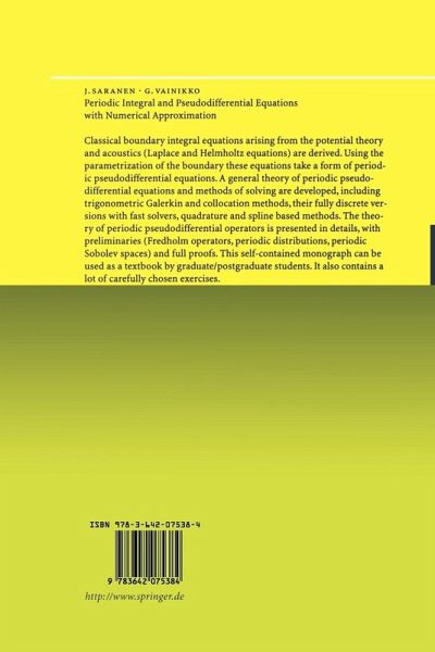 Classical boundary integral equations arising from the potential theory and acoustics (Laplace and Helmholtz equations) are derived. Using the parametrization of the boundary these equations take a form of periodic pseudodifferential equations. A general theory of periodic pseudodifferential equations and methods of solving are developed, including trigonometric Galerkin and collocation methods, their fully discrete versions with fast solvers, quadrature and spline based methods. The theory of periodic pseudodifferential operators is presented in details, with preliminaries (Fredholm operators, periodic distributions, periodic Sobolev spaces) and full proofs. This self-contained monograph can be used as a textbook by graduate/postgraduate students. It also contains a lot of carefully chosen exercises.