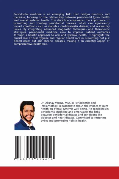 Periodontal medicine is an emerging field that bridges dentistry and medicine, focusing on the relationship between periodontal (gum) health and overall systemic health. This discipline emphasizes the importance of preventing and treating periodontal diseases, which can significantly impact conditions such as diabetes, cardiovascular disease, and respiratory issues. By integrating advanced diagnostic techniques and therapeutic strategies, periodontal medicine aims to improve patient outcomes through a holistic approach to oral and systemic health. It highlights the crucial role of oral hygiene and regular dental care in preventing not just dental issues but also chronic diseases, making it an essential aspect of comprehensive healthcare.