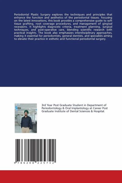 Periodontal Plastic Surgery explores the techniques and principles that enhance the function and aesthetics of the periodontal tissues. Focusing on the latest innovations, this book provides a comprehensive guide to soft tissue grafting, root coverage procedures, and management of gingival recessions. It highlights diagnostic criteria, treatment planning, surgical techniques, and post-operative care, blending scientific research with practical insights. The book also emphasizes interdisciplinary approaches, making it essential for periodontists, general dentists, and specialists aiming to elevate their practice in esthetic and functional periodontal surgery.