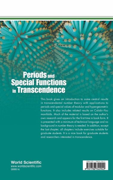 This book gives an introduction to some central results in transcendental number theory with application to periods and special values of modular and hypergeometric functions. It also includes related results on Calabi–Yau manifolds. Most of the material is based on the author's own research and appears for the first time in book form. It is presented with minimal of technical language and no background in number theory is needed. In addition, except the last chapter, all chapters include exercises suitable for graduate students. It is a nice book for graduate students and researchers interested in transcendence.