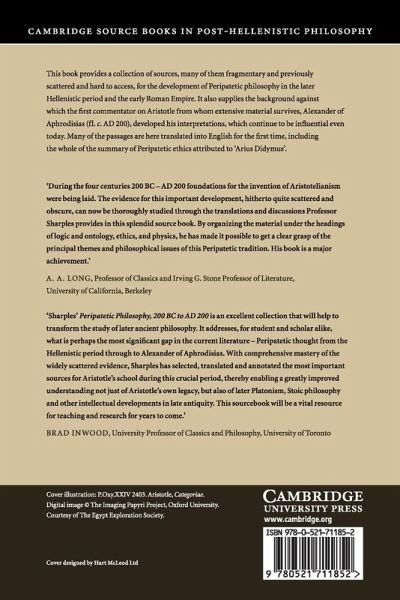 This book provides a collection of sources, many of them fragmentary and previously scattered and hard to access, for the development of Peripatetic philosophy in the later Hellenistic period and the early Roman Empire. It also supplies the background against which the first commentator on Aristotle from whom extensive material survives, Alexander of Aphrodisias (fl. c. AD 200), developed his interpretations which continue to be influential even today. Many of the passages are here translated into English for the first time, including the whole of the summary of Peripatetic ethics attributed to 'Arius Didymus'.