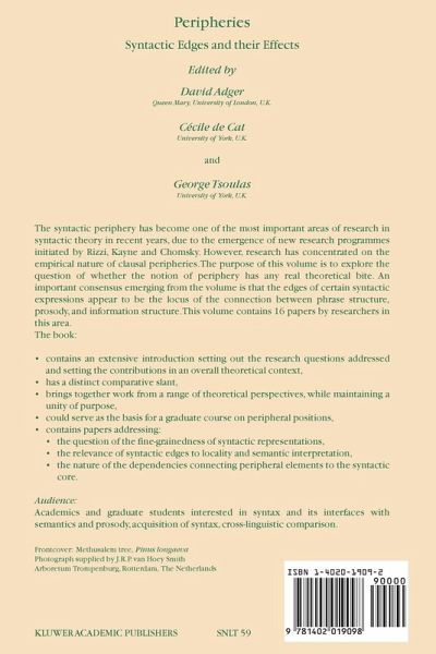 = the nature of the dependencies connecting peripheral elements to the syntactic core. Audience: Academics and graduate students interested in syntax and its interfaces with semantics and prosody, acquisition of syntax, cross-linguistic comparison.