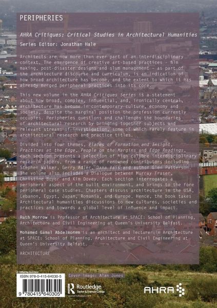 Bringing together subjects and relevant streams of investigation some of which rarely feature in architectural research and practice titles, this book challenges the boundaries of architectural research. Peripheries is a statement on how broad, complex, and, ironically, central, architecture has become in contemporary culture, economy and society, despite the marginal position its profession occupies. Chapters discuss architecture in Argentina, Chile, United States, Egypt, Qatar, Britain, Europe and Australia. Hence, it takes architectural humanities discussions to new cultures, societies and practices and towards a global level of influence and impact.