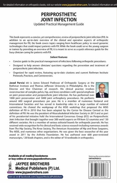 Salient Features: ¿ Concise guide to the of infections following orthopedic procedures. ¿ Designed to help answer clinicians' questions regarding the prevention and treatment of periprosthetic joint infection. ¿ Organized for rapid review, featuring up-to-date citations and current Rothman Institute Protocols, Practices, and Controversies in every chapter. ¿ Discusses current evidences and pitfalls. ¿ Important points provided in boxes for quick reference. ¿ Supplemented with lots of tables and clinical images for better understanding. ¿ References for further reading in every chapter.