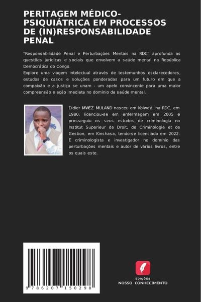 "Responsabilidade Penal e Perturbações Mentais na RDC" aprofunda as questões jurídicas e sociais que envolvem a saúde mental na República Democrática do Congo.Explore uma viagem intelectual através de testemunhos esclarecedores, estudos de casos e soluções ponderadas para um futuro em que a compaixão e a justiça se unam - um apelo convincente para uma maior compreensão e ação imediata no domínio da saúde mental.