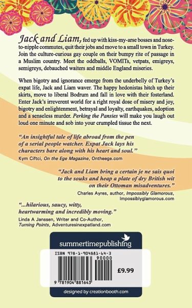 Jack and Liam, fed up with kiss-my-arse bosses and nose-to-nipple commutes, quit their jobs and move to a small town in Turkey. Join the culture-curious gay couple on their bumpy rite of passage in a Muslim country. Meet the oddballs, VOMITs, vetpats, emigreys, semigreys, debauched waiters and middle England miseries. When bigotry and ignorance emerge from the crude underbelly of Turkey's expat life, Jack and Liam waver. Determined to stay the course, the happy hedonistas hitch up their skirts, move to the heart of liberal Bodrum and fall in love with their intoxicating foster land. Enter Jack's irreverent world for a right royal dose of misery and joy, bigotry and enlightenment, betrayal and loyalty, friendship, love, earthquakes, birth, adoption and a senseless murder. Perking the Pansies will make you laugh out loud one minute and sob into your crumpled tissue the next.