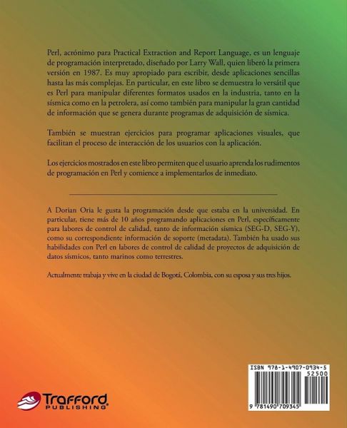 Perl, acrónimo para Practical Extraction and Report Language, es un lenguaje de programación interpretado, diseñado por Larry Wall, quien liberó la primera versión en 1987. Es muy apropiado para escribir, desde aplicaciones sencillas hasta las más complejas. En particular, en este libro se demuestra lo versátil que es Perl para manipular diferentes formatos usados en la industria, tanto en la sísmica como en la petrolera, así como también para manipular la gran cantidad de información que se genera durante programas de adquisición de sísmica. También se muestran ejercicios para programar aplicaciones visuales, que facilitan el proceso de interacción de los usuarios con la aplicación. Los ejercicios mostrados en este libro permiten que el usuario aprenda los rudimentos de programación en Perl y comience a implementarlos de inmediato.